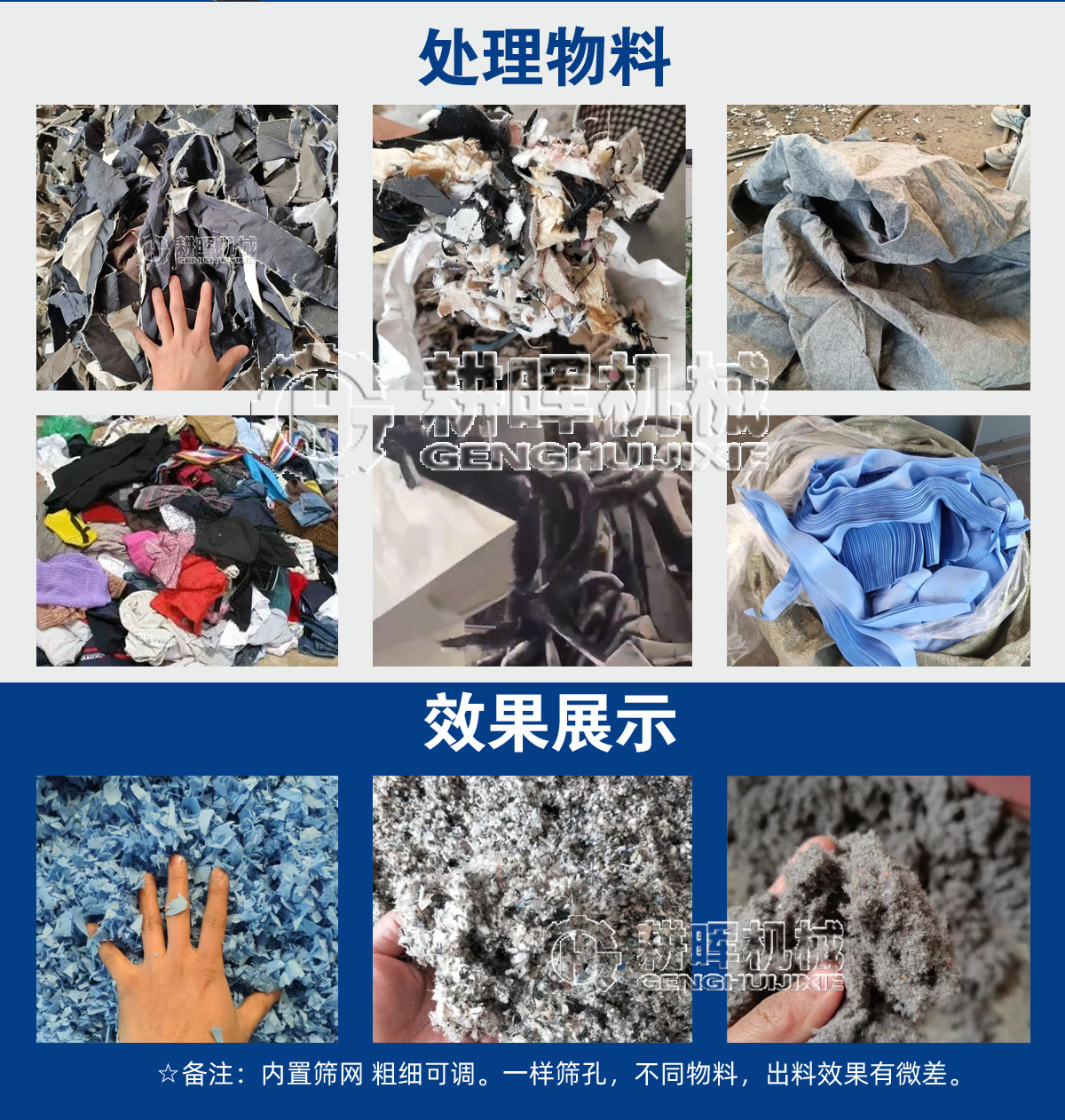 将衣服,无纺布,服装厂边角料等布纤维粉碎至指定粒度