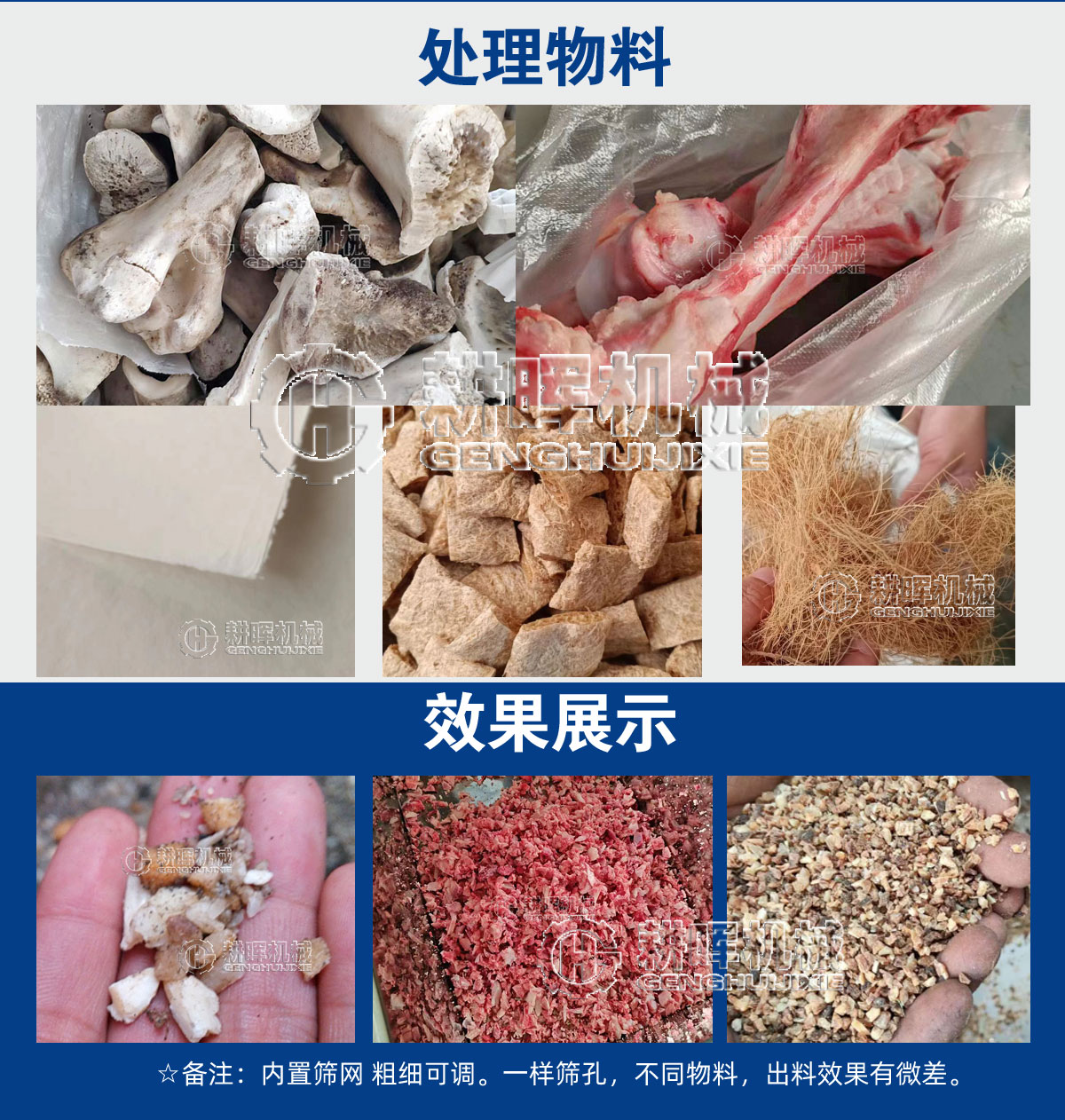 将骨头,中药材,蚕茧,塑料等切碎至指定粒度